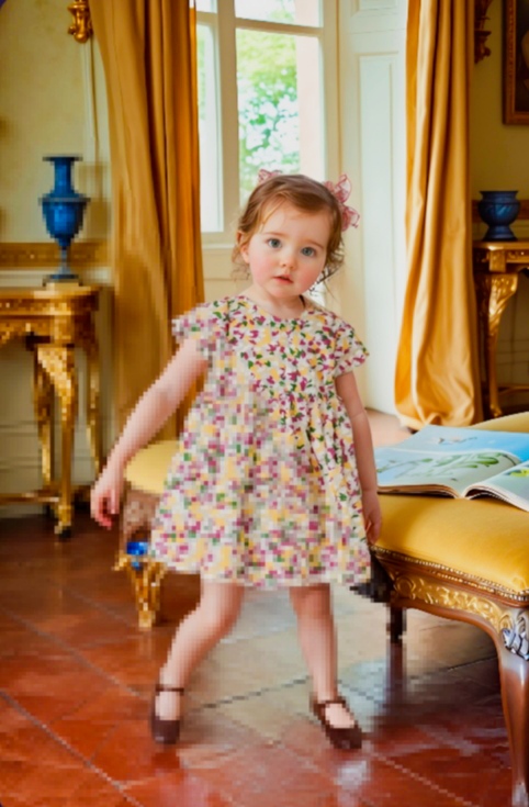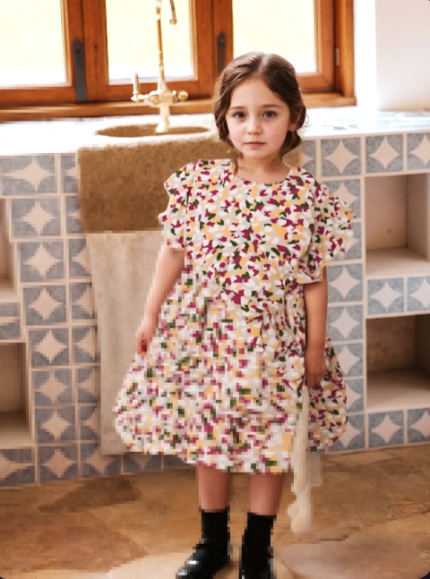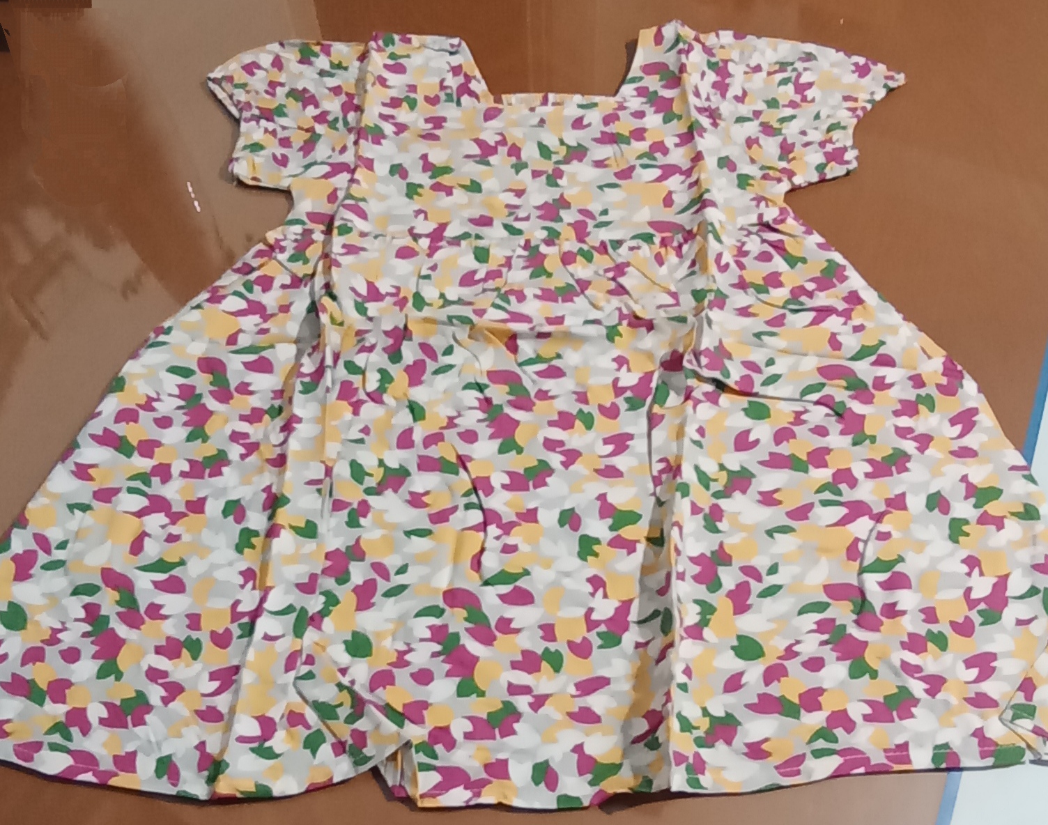 پیراهن گلدار ( طرح کوبیسمی) دخترانه بدون آستین ، دوخت چین در چهار سایز ۹۰ + ۱۰۰ + ۱۱۰ + ۱۲۰